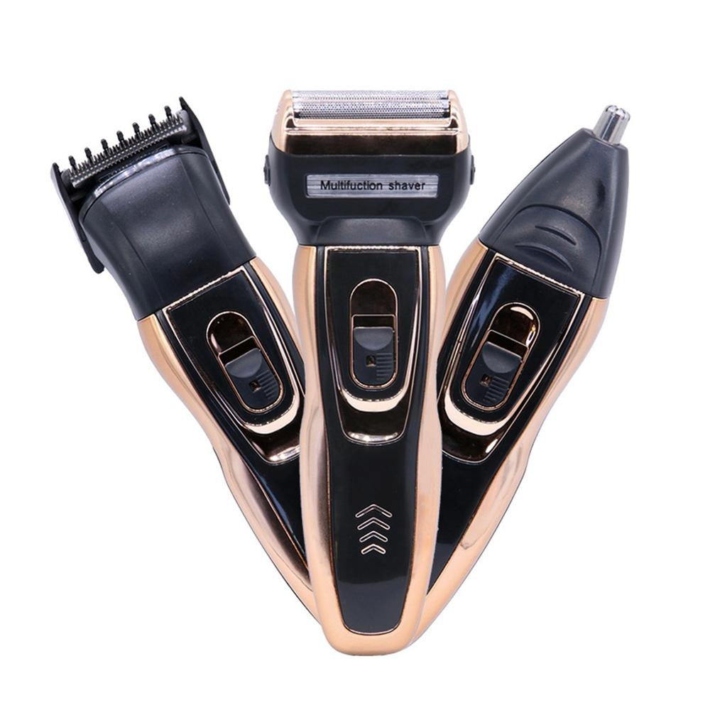 🔥 Máquina de afeitar 3 en 1 con tres cabezales intercambiables para rasurar la barba, cortar el cabello y quitar los vellos de nariz, orejas y cejas.