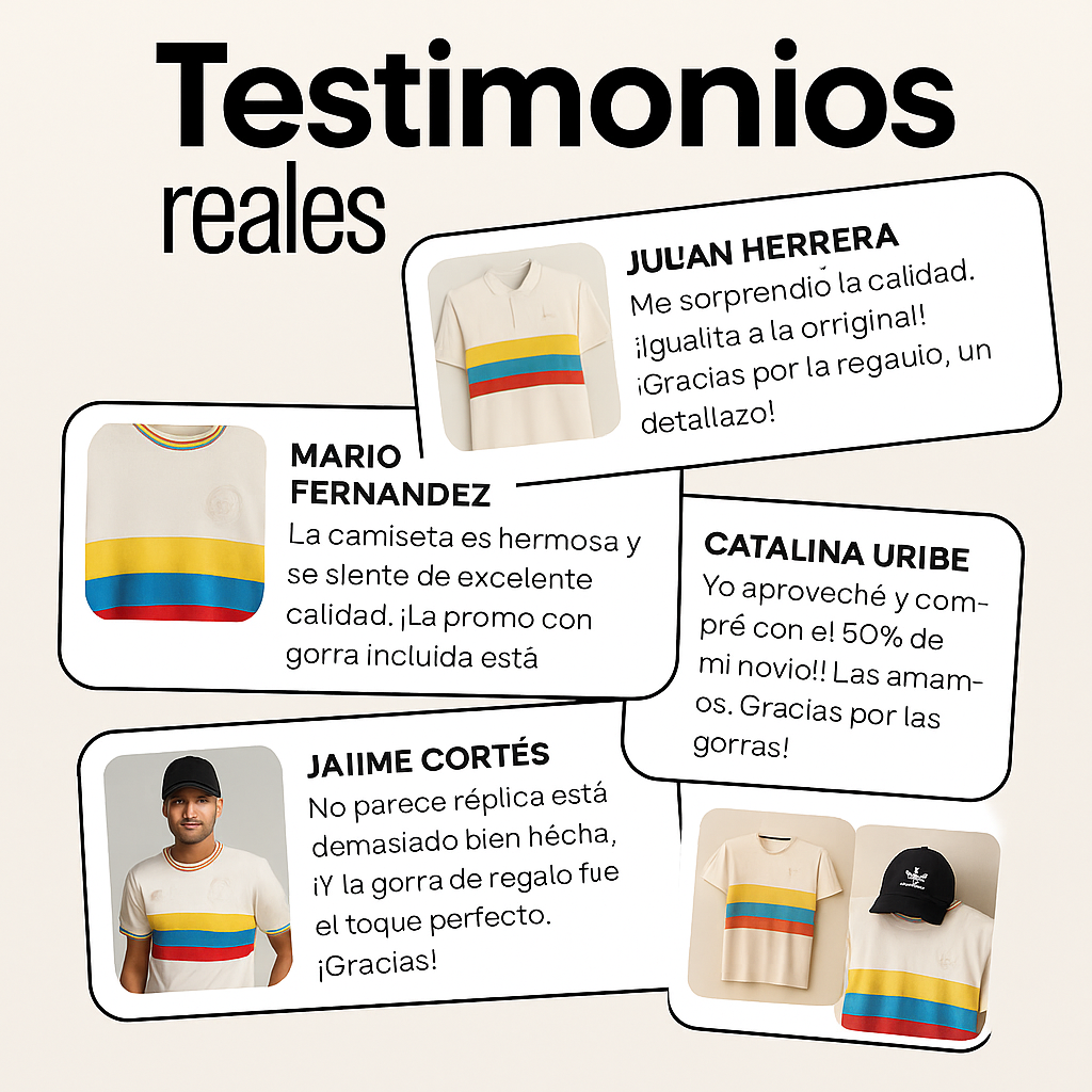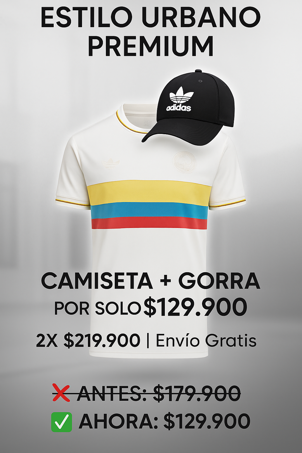 👉 ¡Sí! El combo incluye la camiseta + la gorra. También tenemos la opción de llevar 2 combos por un precio especial.