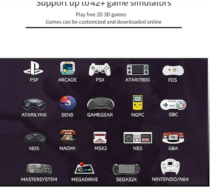 La consola viene con más de 10,000 juegos retro clásicos de consolas como PlayStation, Nintendo 64, Super Nintendo, SEGA, Game Boy, entre otros. Puedes buscar por nombre o categoría.