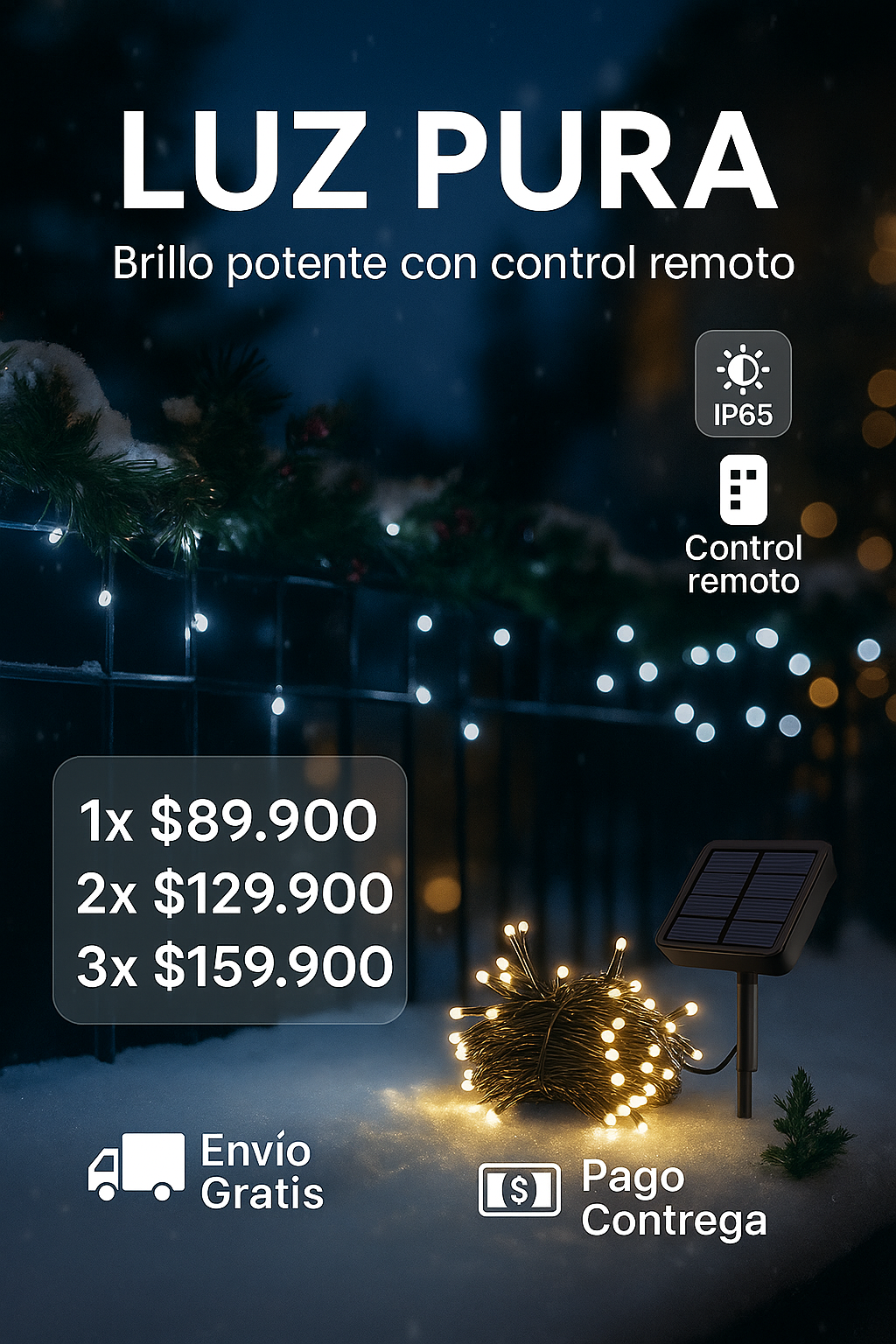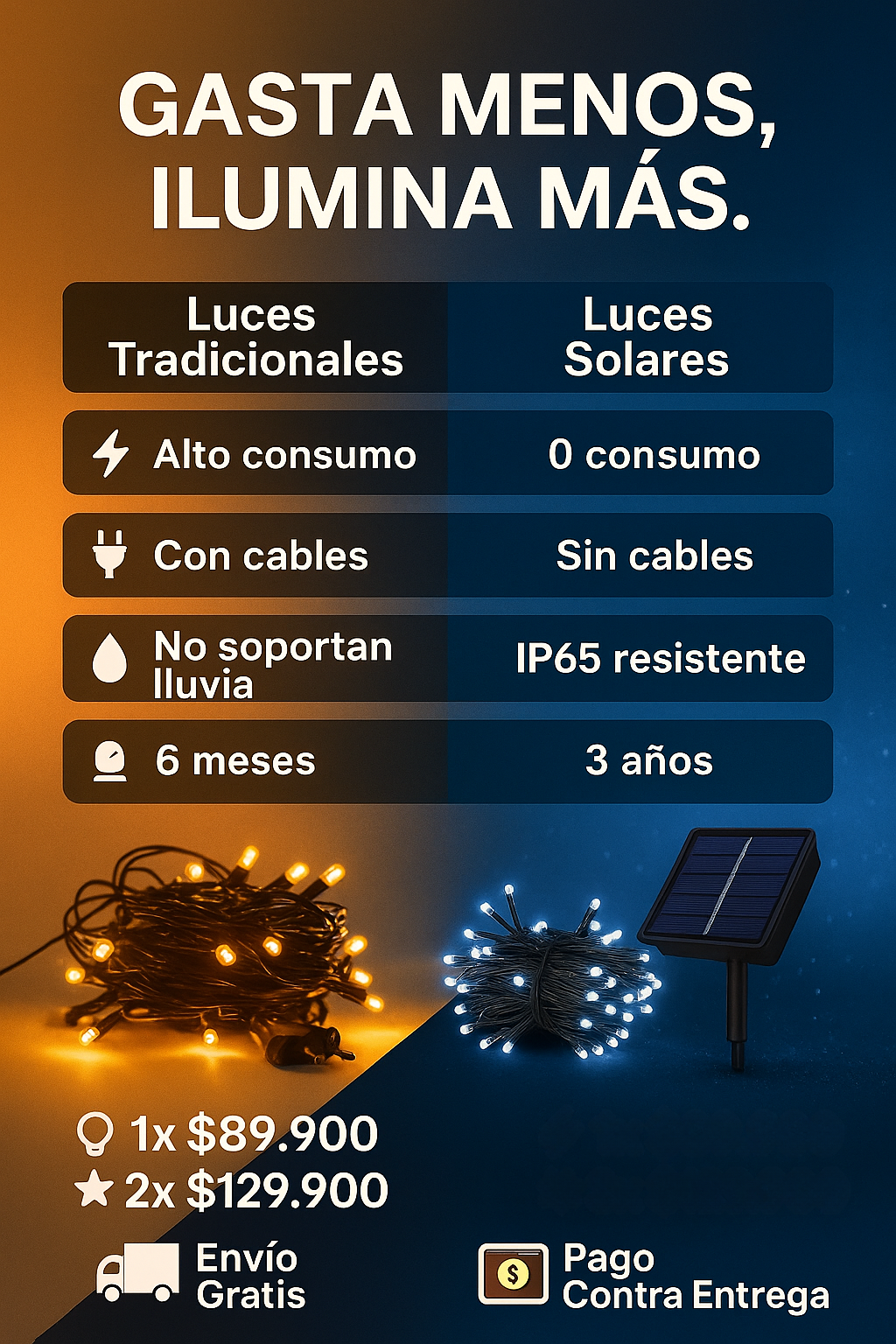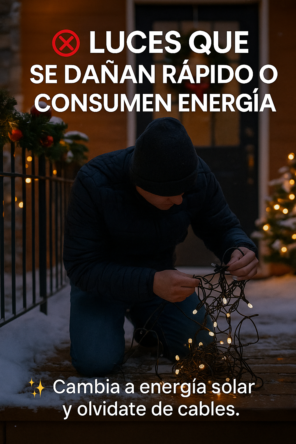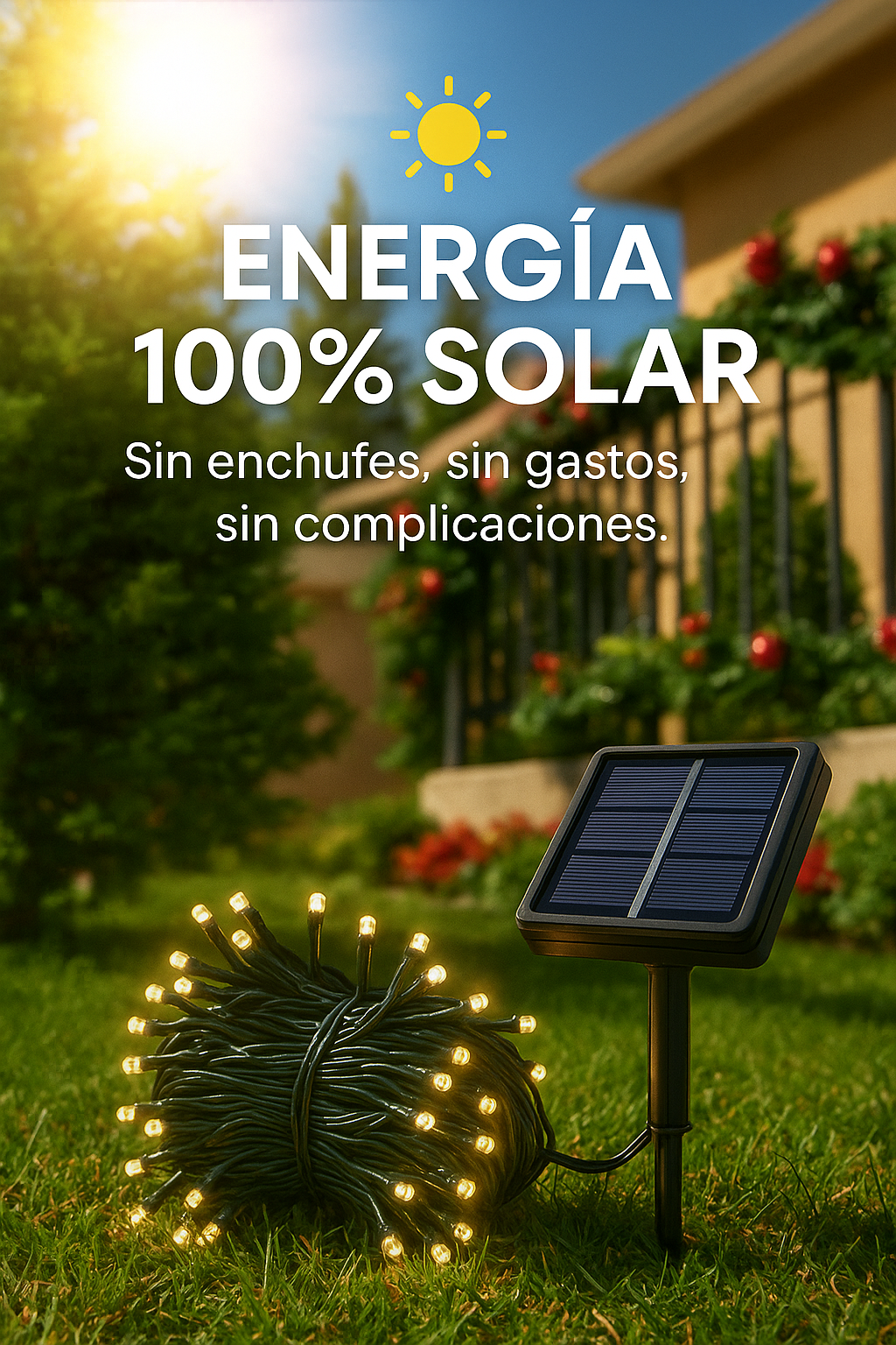 Estas luces son 100% solares y funcionan de forma automática: se cargan durante el día y se encienden solas al anochecer.