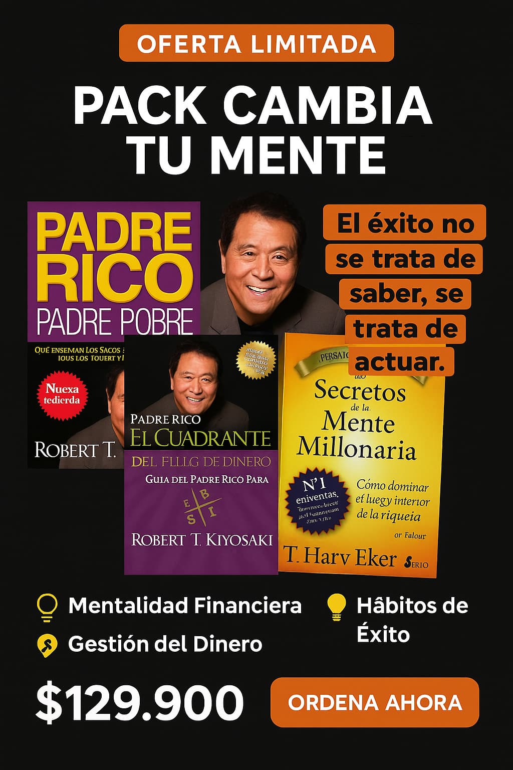 Padre Rico El cuadrante del flujo del finero, Piense y hágase rico y Los secretos de la mente millonaria.
