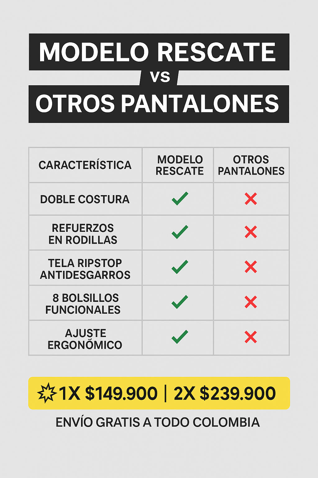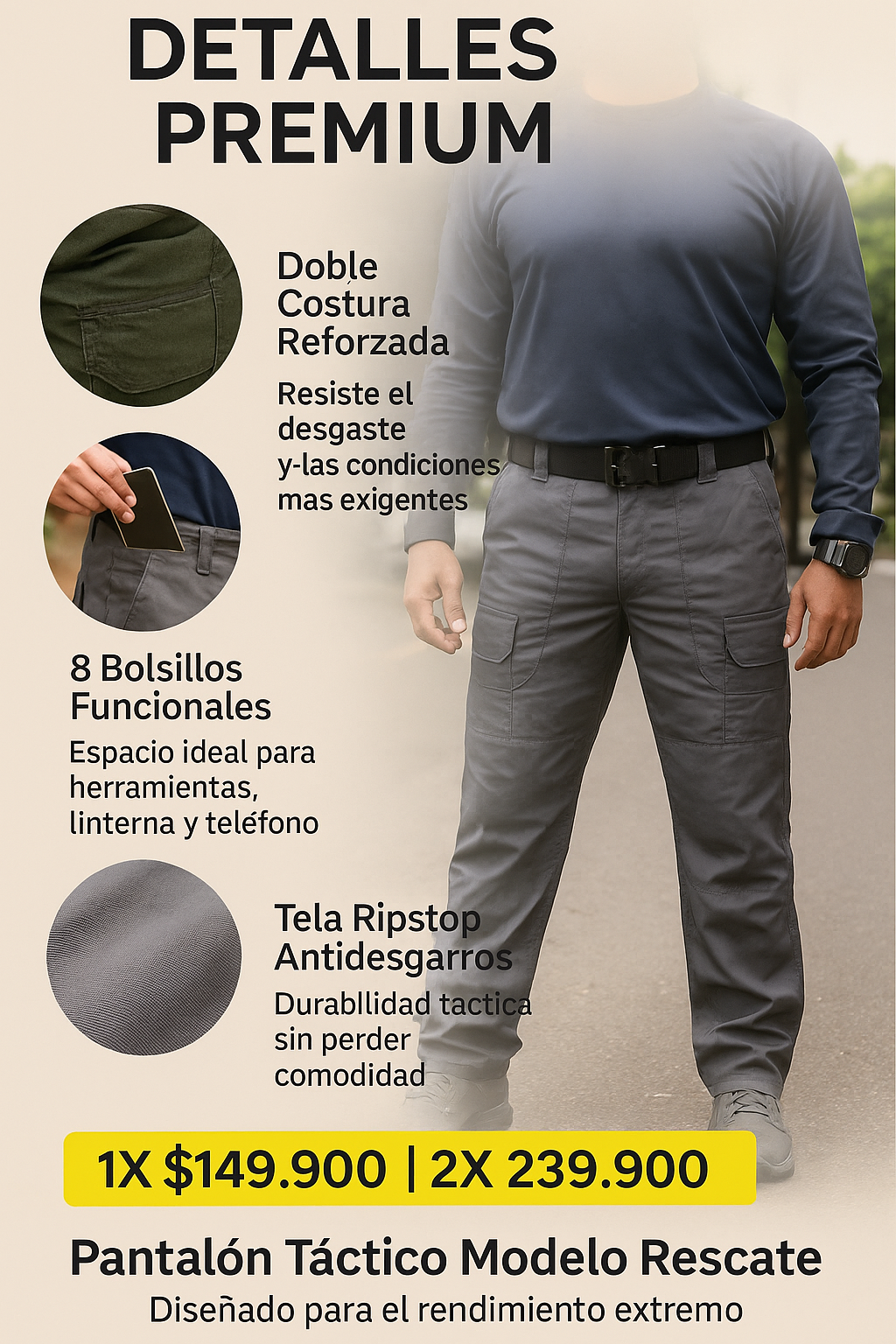 El Modelo Rescate está diseñado para ambos usos. Su tela Ripstop antidesgarros y doble costura reforzada lo hacen perfecto tanto para actividades tácticas, trabajo de campo o uso diario exigente.