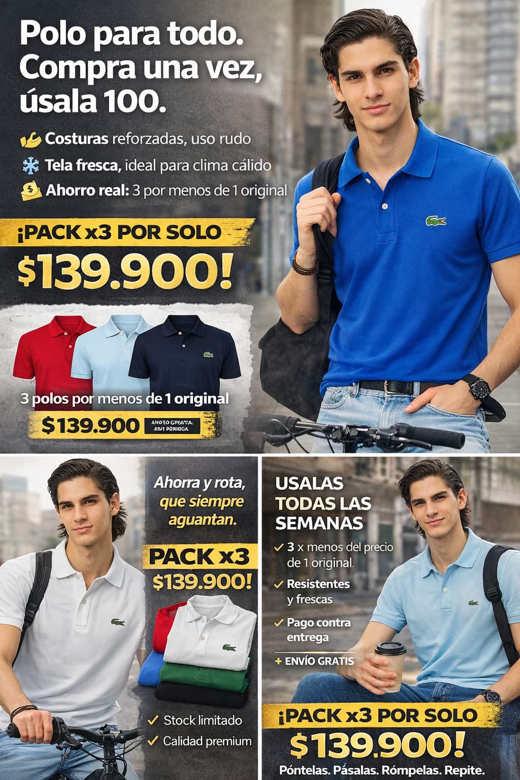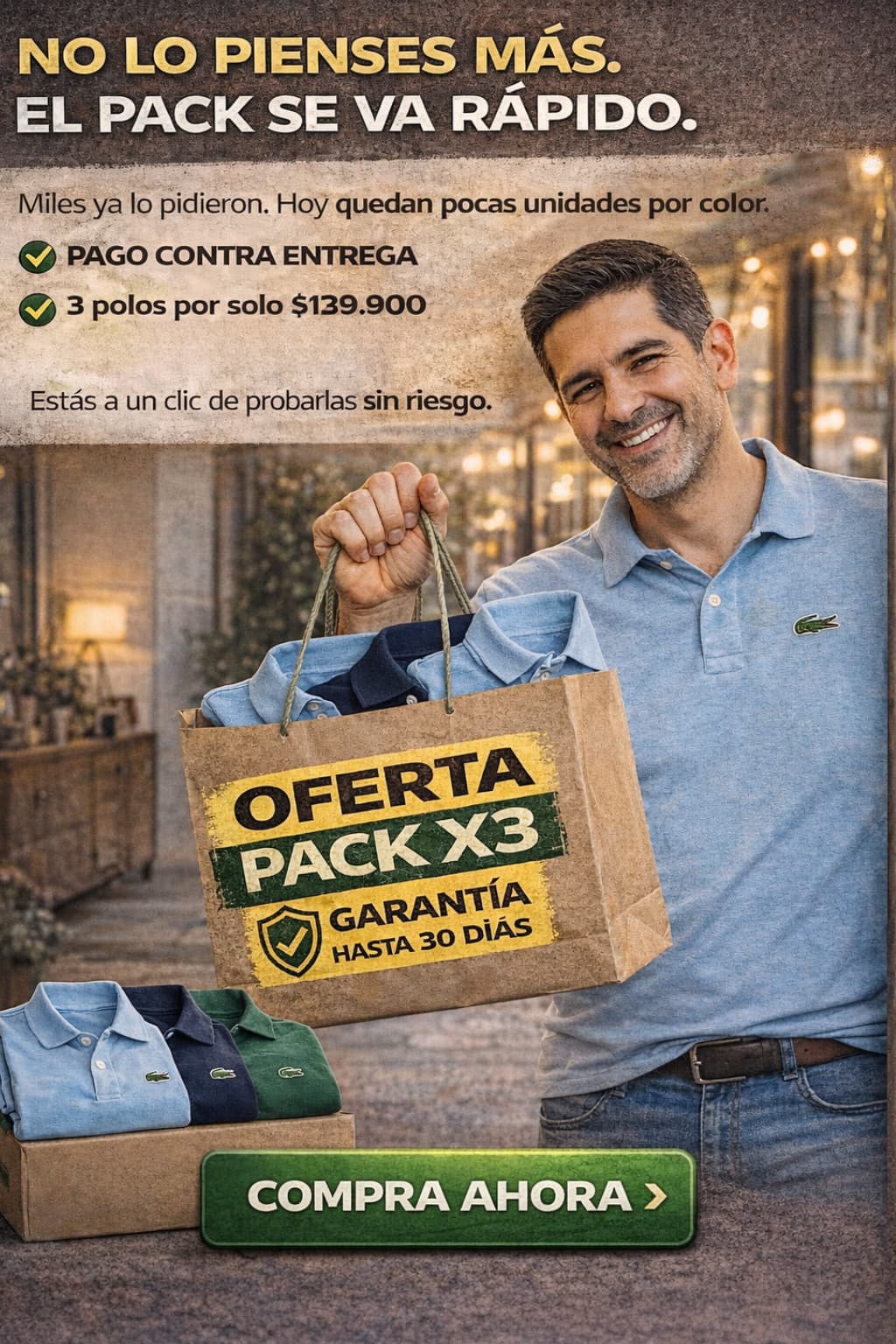 👉 Claro que sí. Contamos con pago contra entrega en todo Colombia para que recibas tu polo y pagues solo al tenerlo en tus manos.