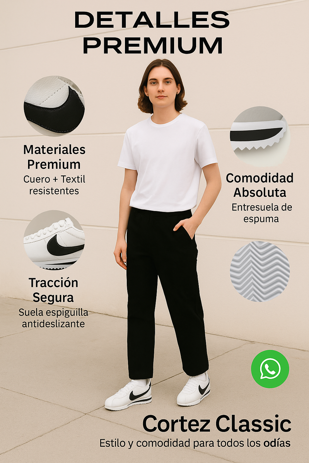 👉No. Son zapatillas Cortez Classic de alta calidad, con materiales premium (cuero + textil), diseñadas para brindar comodidad, durabilidad y un look clásico a un precio accesible.